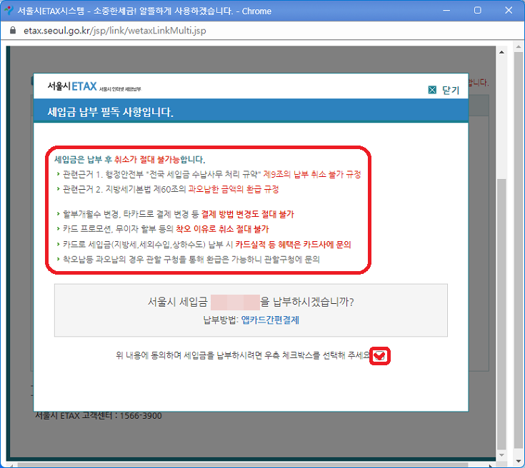 세금 내역 페이지가 뜨면 우측 하단의 "즉시납부"를 클릭하자.