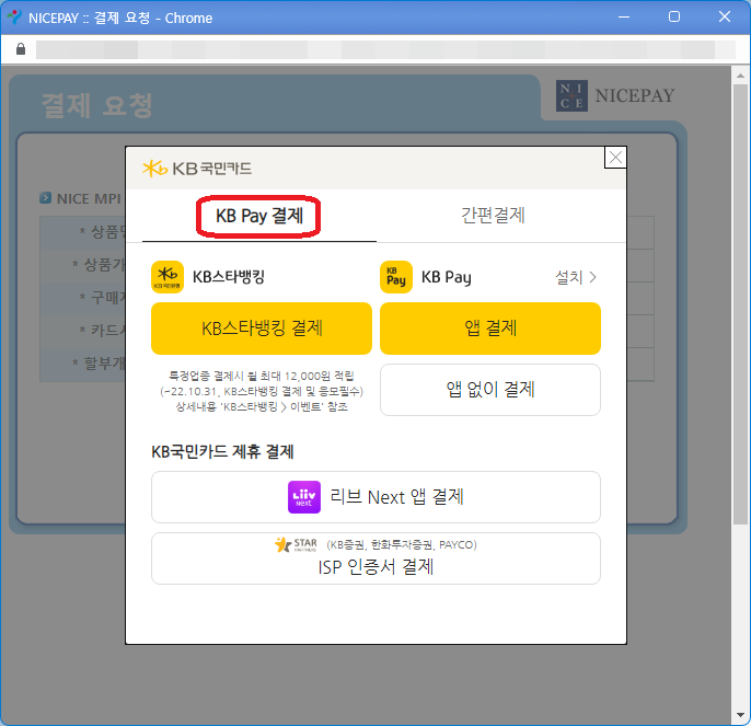 국민은행 스타뱅킹 앱에 내장되어 있는 KB페이로 결제할 수도 있고, 그냥 KB페이 앱으로도 결제할 수 있다.