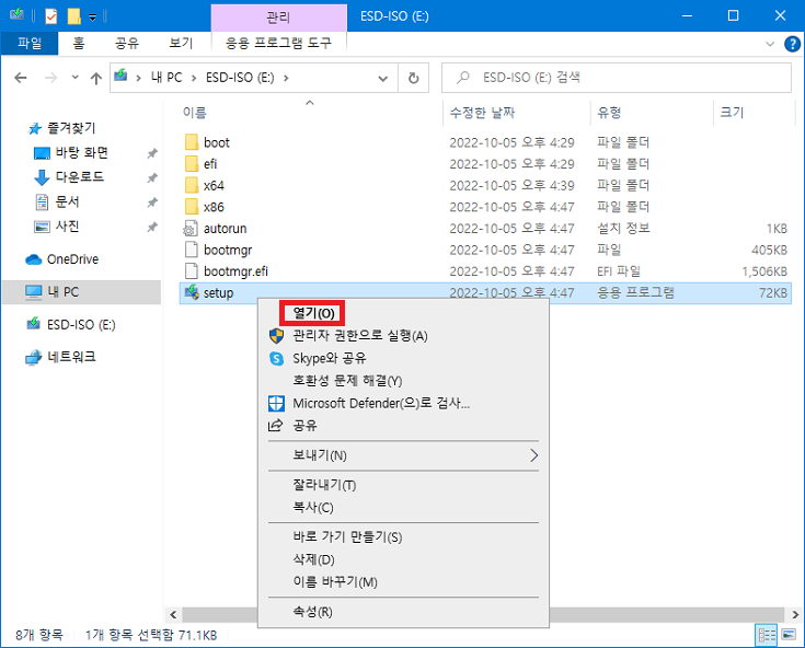 굳이 USB 설치디스크를 작성하지 않고, 윈도우10 설치 iso 파일을 반디집이나 알집같은 프로그램을 사용해서 하드디스크 드라이브에 압축 해제한 다음 setup.exe 파일을 실행해도 될 듯하다.