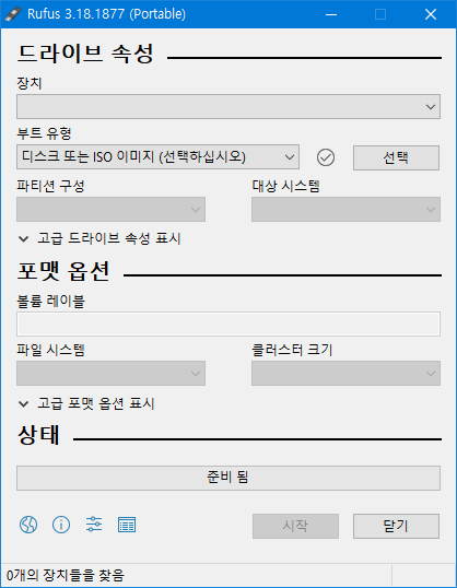 Rufus 프로그램으로 USB 설치디스크를 작성한 다음,