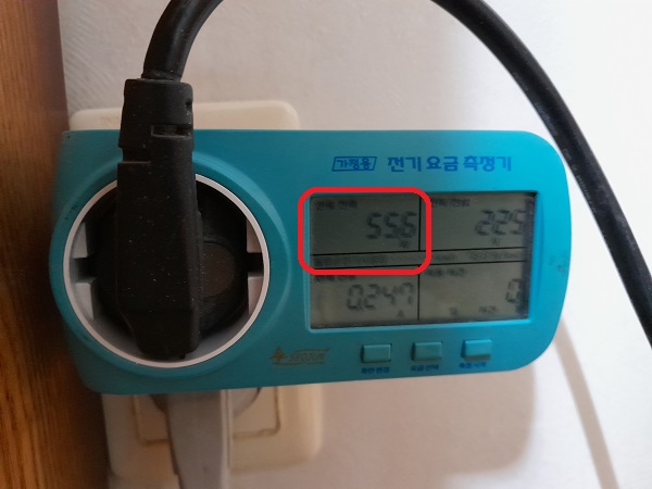 CPU 유휴 상태에서 소비전력을 측정해 봤는데, 55.6W가 나온다.