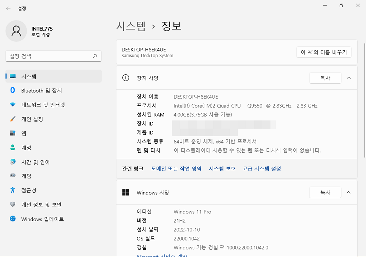 윈도우11 21H1은 잘 돌아간다. 체감속도는 주관적이긴 한데, 개인적으로는 사무용으로는 충분해 보인다.