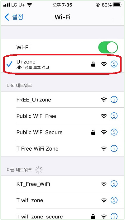 데이터와 음성, 문자는 별 문제없이 잘 되는데, 암호 걸려 있는 U+zone 지하철 와이파이에 연결 시도하면 ID와 비밀번호를 요구한다.