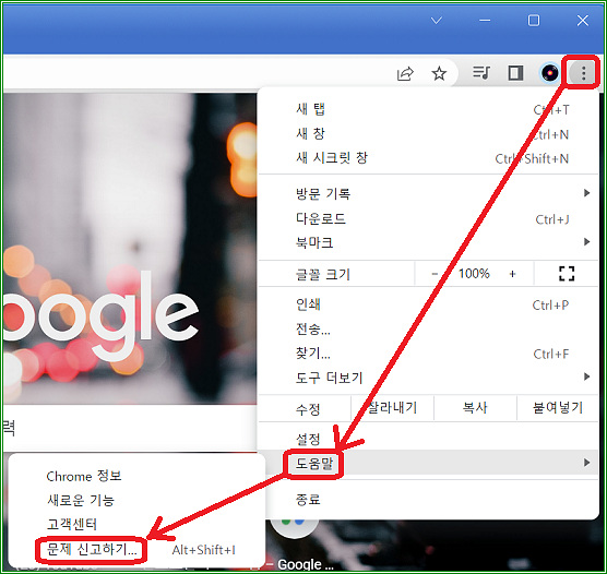 데스크톱 크롬 버그 신고하기