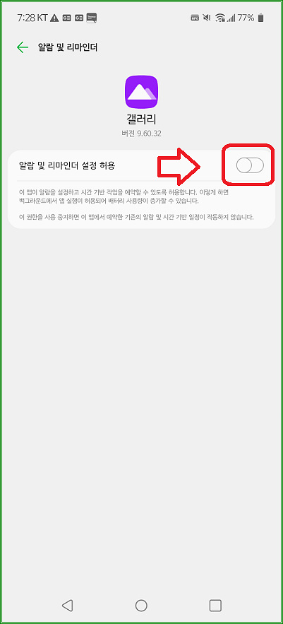 "알람 및 리마인더 설정 허용" 스위치를 끄자.