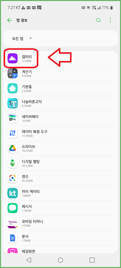 "갤러리"를 터치하자.