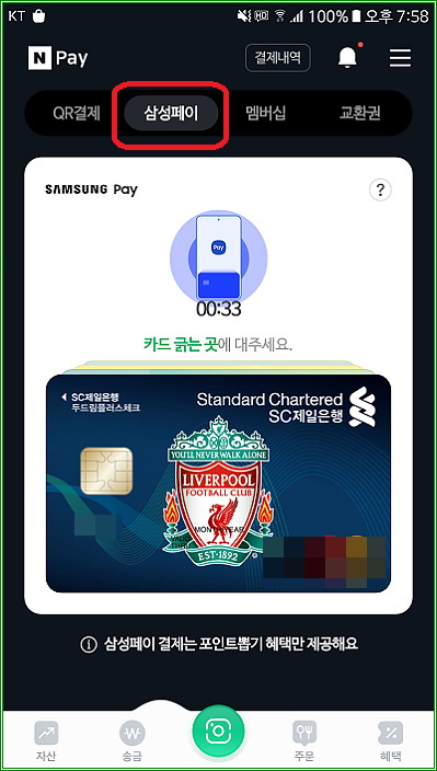 네이버페이 삼성페이로 전국의 거의 모든 카드가맹점에서 결제 가능하다.