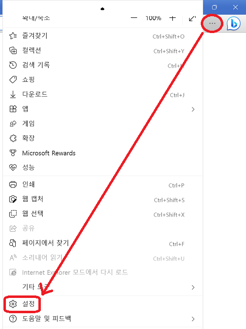 1. 우측 상단의 점점점을 클릭하고 "설정"을 클릭하자.