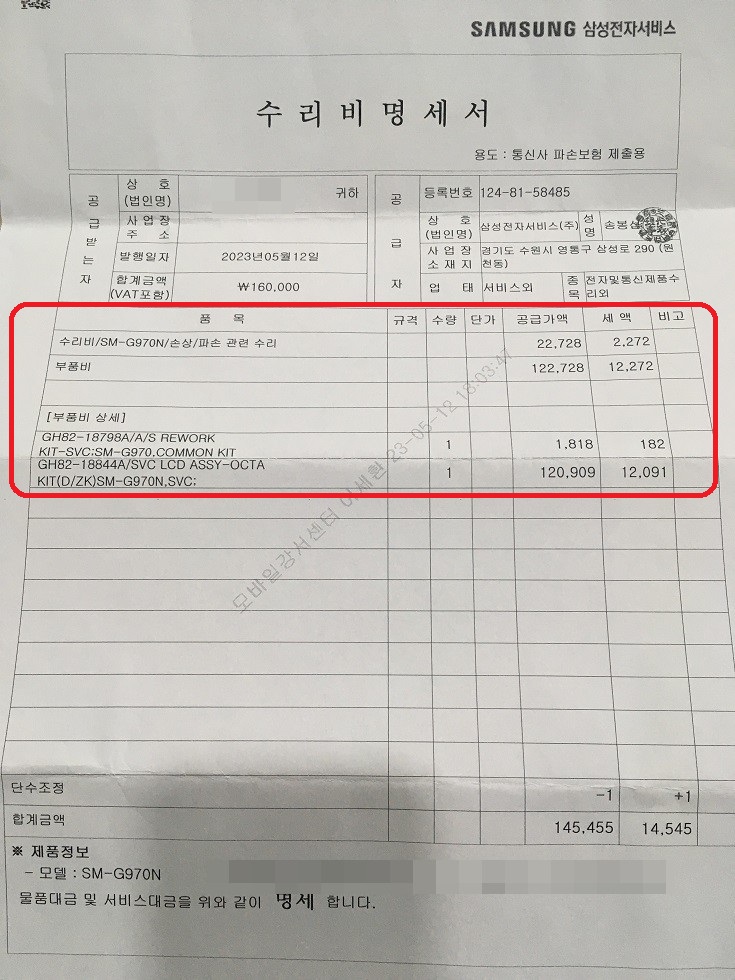 통신사 보험을 청구하려면 수리비명세서 발급을 요청하자.