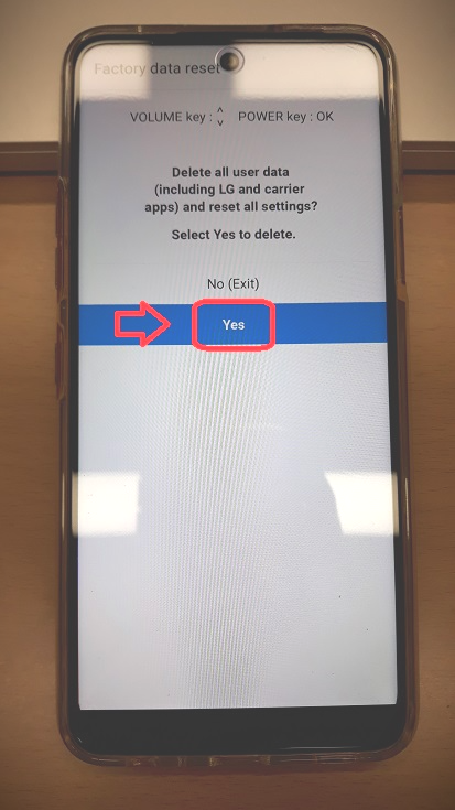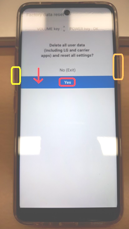 마찬가지로 볼륨다운 버튼을 눌러서 YES를 선택한 다음 전원 버튼을 누르자.