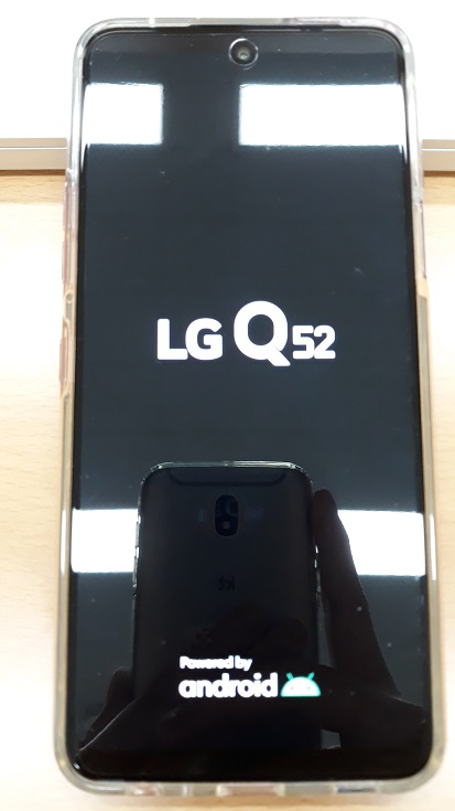 2. 이어서 전원이 켜지고 LG Q52 로고가 뜨면 볼륨다운 버튼은 계속 떼지 않고 누르고 있는 상태에서 전원 버튼을 연타하자.