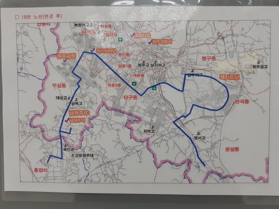원주역이 개업하면서 시내버스 노선들도 대거 조정되었다.