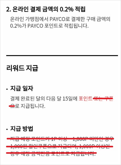 페이코 제휴카드 및 페이코 제로페이 사용금액은 결제 리워드를 지급하지 않는다.