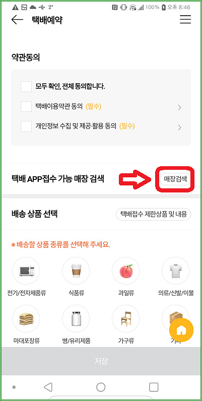 여기서 주의할 부분! 택배를 취급하지 않는 매장이 매우 많다. "매장검색"을 터치해서 택배를 취급하는 매장인지 미리 확인해야 한다.