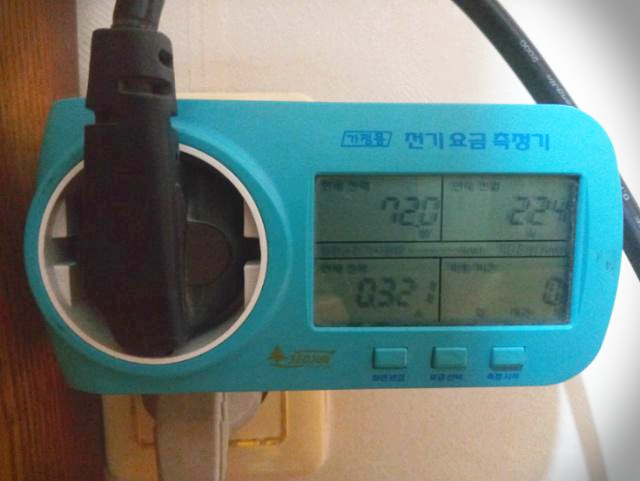 정확한 소비전력은 전기요금측정기 혹은 전력측정기라는 물건으로 측정해야 한다[바로가기].