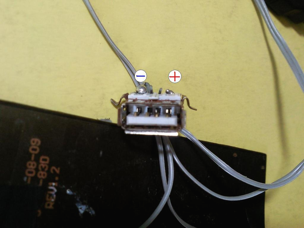 사진으로 봤을 때 USB커넥터 맨 왼쪽 핀이 -, 맨 오른쪽 핀이 +다.