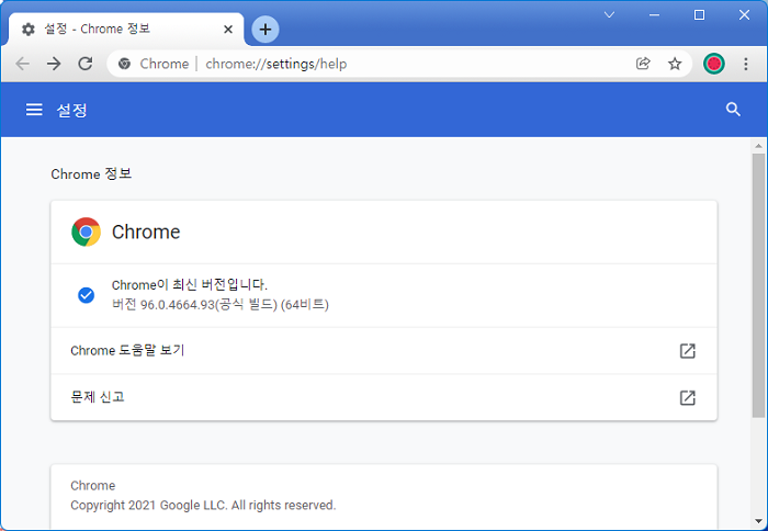 크롬 주소 입력하는 부분에 chrome://settings/help를 입력하면 Chrome 정보가 뜨는데, 이 과정에서 크롬이 업데이트된다.