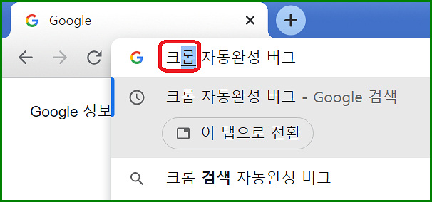 크롬 주소 입력하는 부분에 "크롬"을 입력하니 (개인적으로) 최근에 검색했던 "크롬 자동완성 버그"로 채워져 버린다.