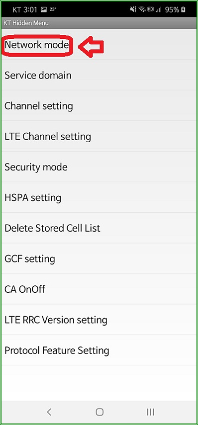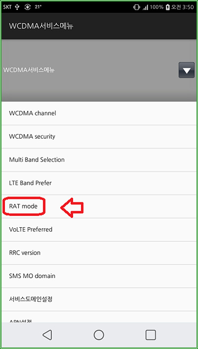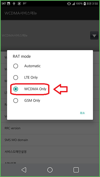 WCDMA ALL을 선택하면 3G로 강제 접속된다. LTE 요금제라도 3G망으로 접속 가능하다.