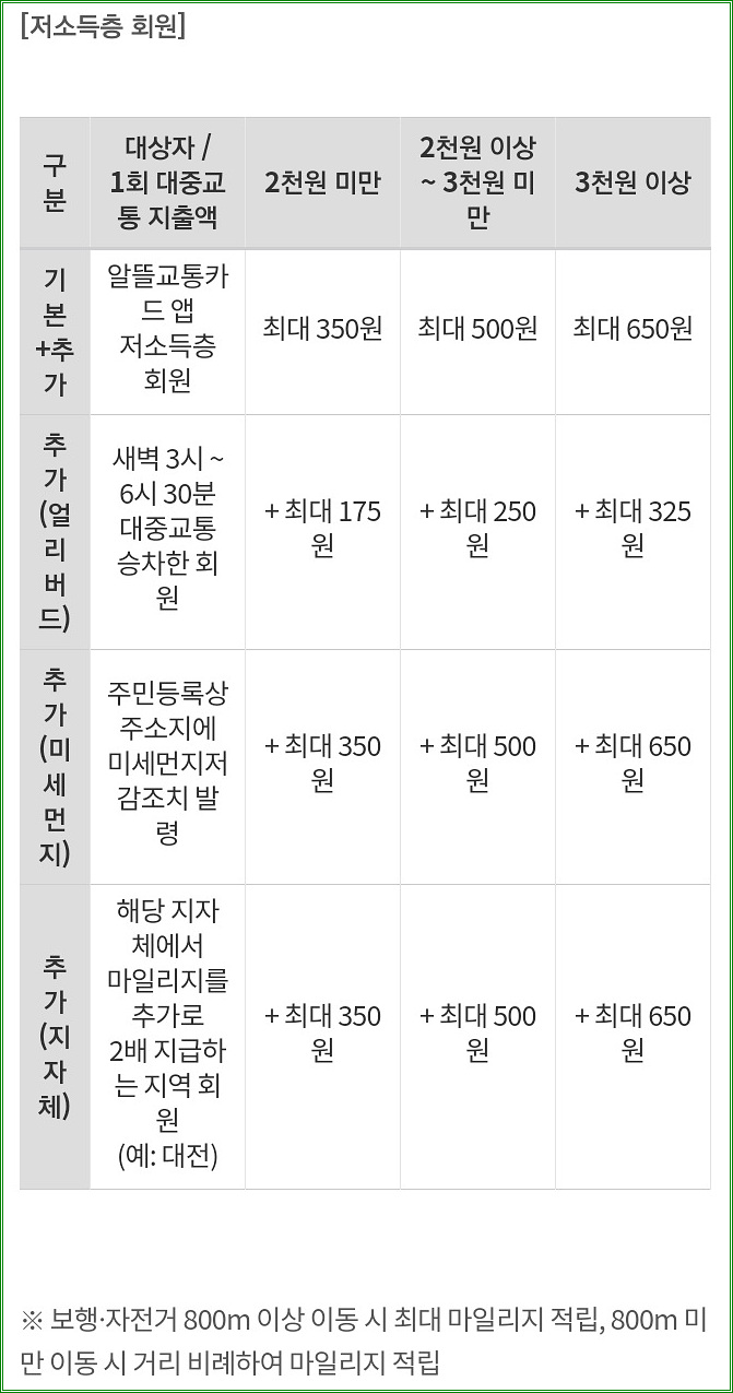 알뜰교통카드 마일리지 적립률 (2021년 4월 1일부터)