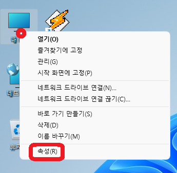 바탕화면의 "내 PC" 아이콘을 마우스 우클릭하고 "속성"을 클릭하자.