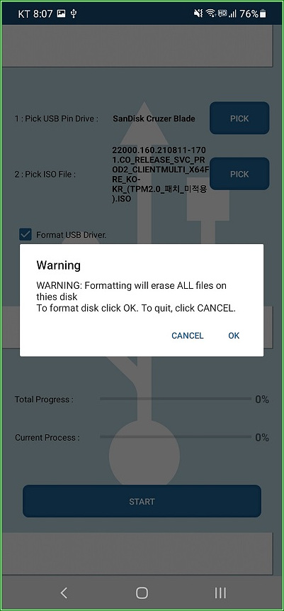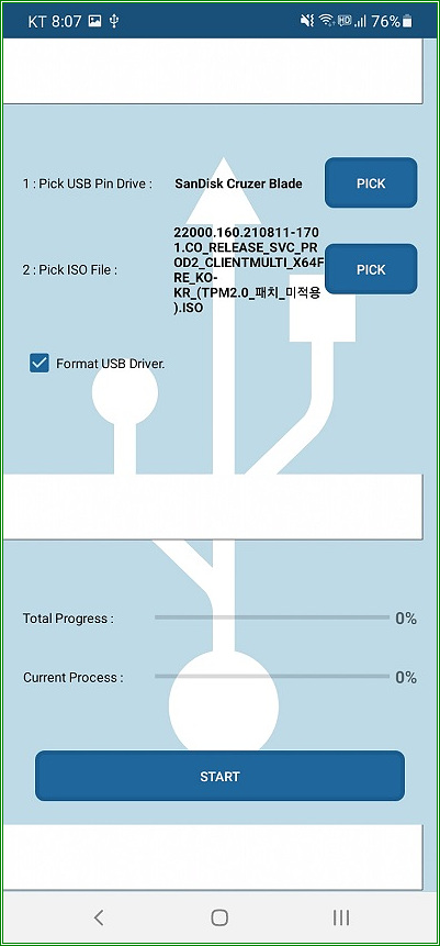 스마트폰에 ISO 2 USB 앱 설치 및 설치디스크 작성
