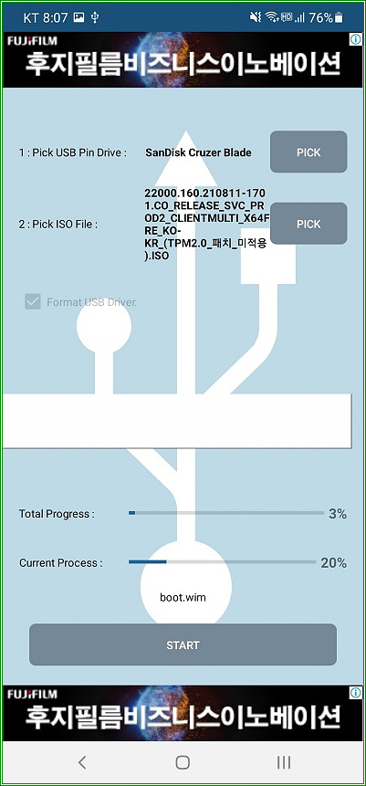 갤럭시 등 안드로이드 스마트폰에서 윈도우10 및 윈도우11 USB 설치디스크 작성하는 방법, Ultimate USB 앱