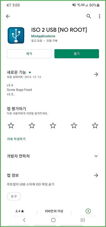 Play스토어에서 "ISO 2 USB" 앱을 다운받자.