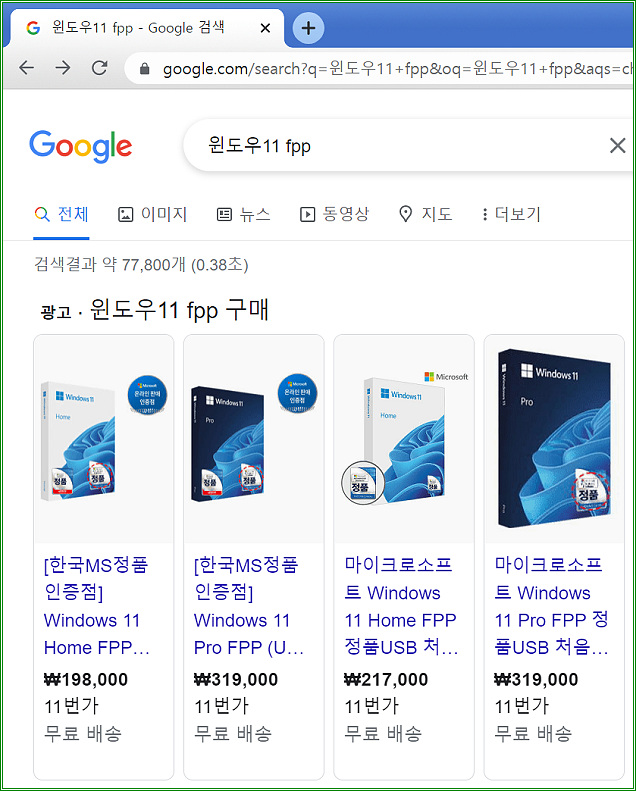 하지만 이제 윈도우11 FPP 라이선스를 구매할 수 있다.