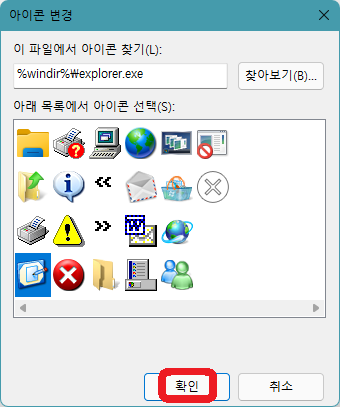 그런데 탐색기 아이콘으로 떠서 헷갈릴 수 있으니까 다른 것으로 바꿔보자.