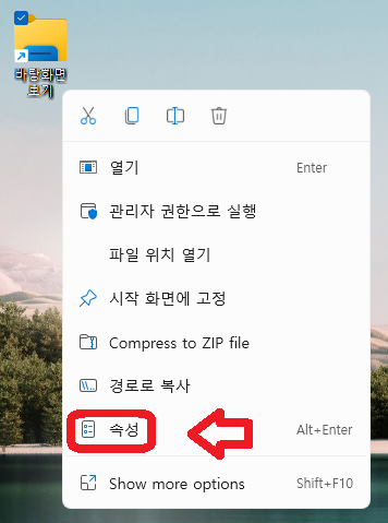 바탕화면에 바탕화면 보기 아이콘이 생성된 것을 확인할 수 있다.